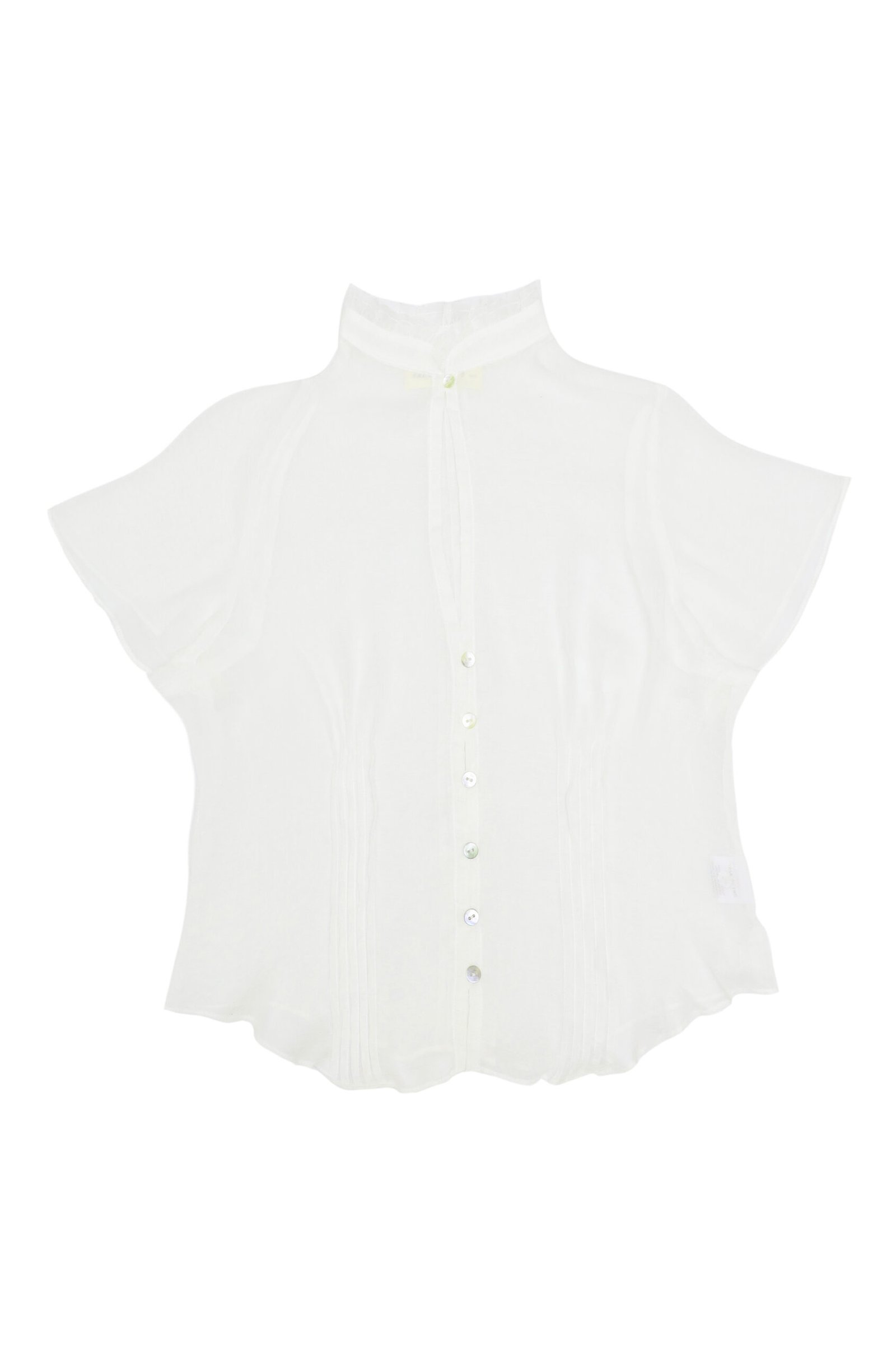 Women’s top made from soft, drapey viscose fabric. Designed with a ruffled neckline, short sleeves, and a row of front buttons for a sweet and elegant look. Available in pastel and black tie-dye motifs that create a feminine and unique impression, perfect for casual or semi-formal everyday wear.