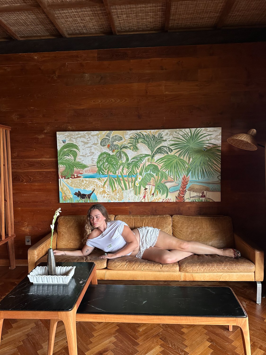 A fresh take on the classic white tee with a fun, asymmetric twist. Made from soft, airy cotton that feels light and easy all day. The front is adorned with playful green “Timun Mas” embroidery, adding a sweet, feminine charm. Perfect for styling with skirts or high-waisted pants for a bright, effortlessly chic look.